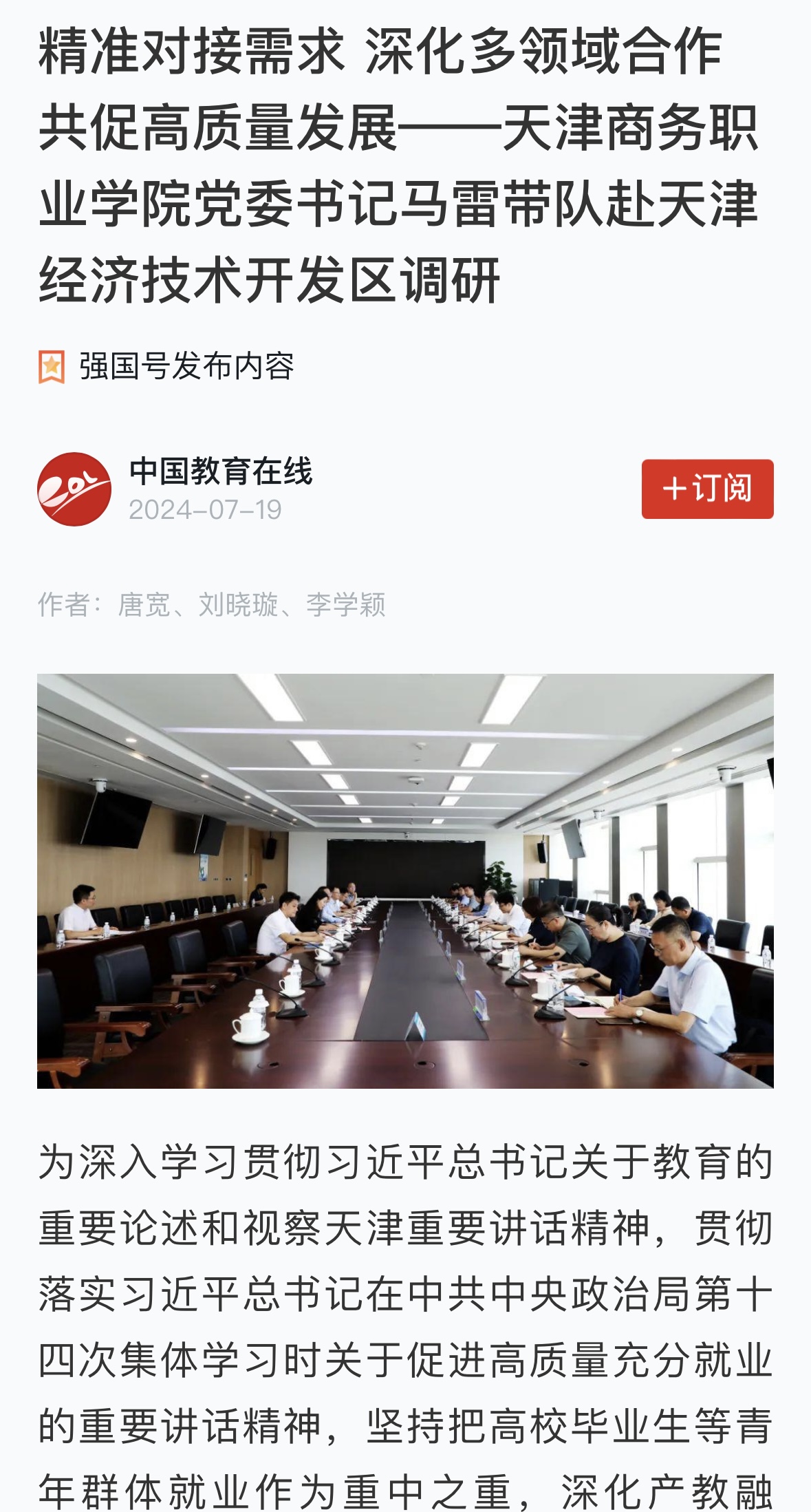 為深入學習貫徹習近平總書記關于教育的重要論述和視察天津重要講話精神,貫徹落實習近平總書記在中共中央政治局第十四次集體學習時關于促進高質量充分就業的重要講話精神,堅持把高校畢業生等青年群體就業作為重中之重,深化產教融合,推動教育鏈、人才鏈、產業鏈與創新鏈有機銜接,7月17日上午,學校黨委書記馬雷帶隊赴天津經濟技術開發區(以下簡稱“經開區”)開展調研和精準對接。