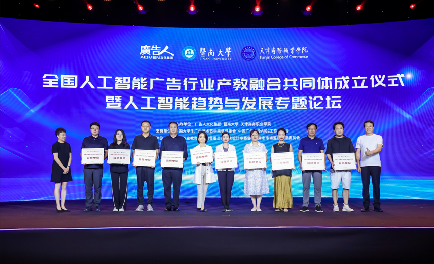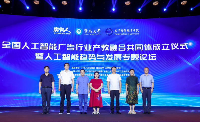 全國人工智能廣告行業(yè)產(chǎn)教融合共同體成立大會,得到全國輕工職業(yè)教育教學指導委員會藝術設計專委會、天津市市場監(jiān)督管理委員會、中國大學生廣告藝術節(jié)學院獎組委會、中國廣告協(xié)會AIGC工作委員會及教育部專家的大力指導和支持。廣告人文化集團總裁、中國廣告協(xié)會副會長穆虹,教育部職業(yè)院校藝術設計類專業(yè)教指委副秘書長、全國輕工職業(yè)教育教指委藝術設計專委會副主任桂元龍,天津商務職業(yè)學院校長劉欣,暨南大學新聞與傳播學院原黨委書記、暨南大學傳播與國家治理研究院原院長楊先順,中國大學生廣告藝術節(jié)學院獎評審主席、原中國廣告協(xié)會學術委員會主任金定海,教育部教育強國建設戰(zhàn)略咨詢委員會委員、教育部教育數(shù)字化專家咨詢委員會委員孫善學蒞臨大會并致辭。