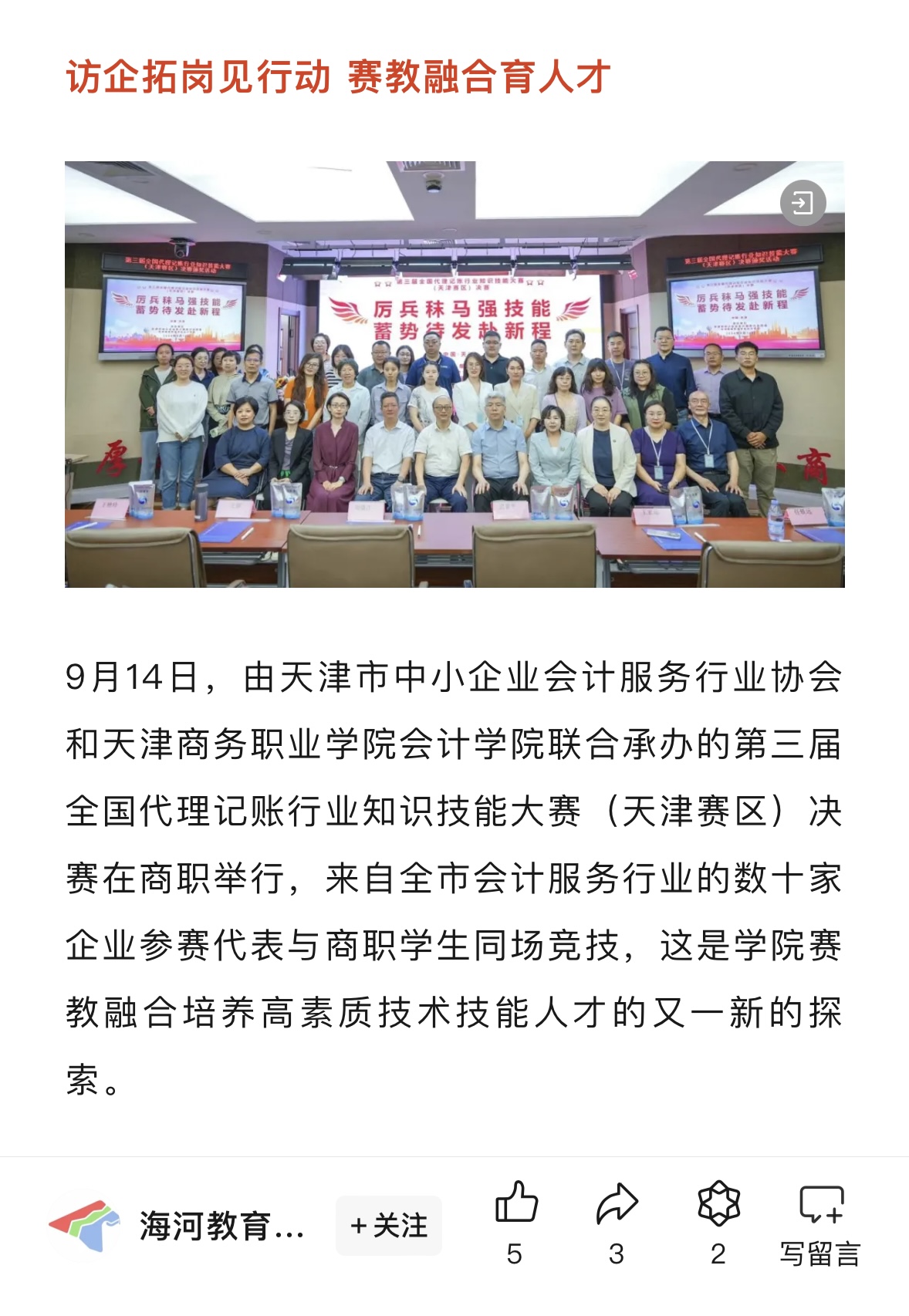 媒體關注 | 【“海河教育園區”微信公眾號】報道我校 訪企拓崗見行動 賽教融合育人才