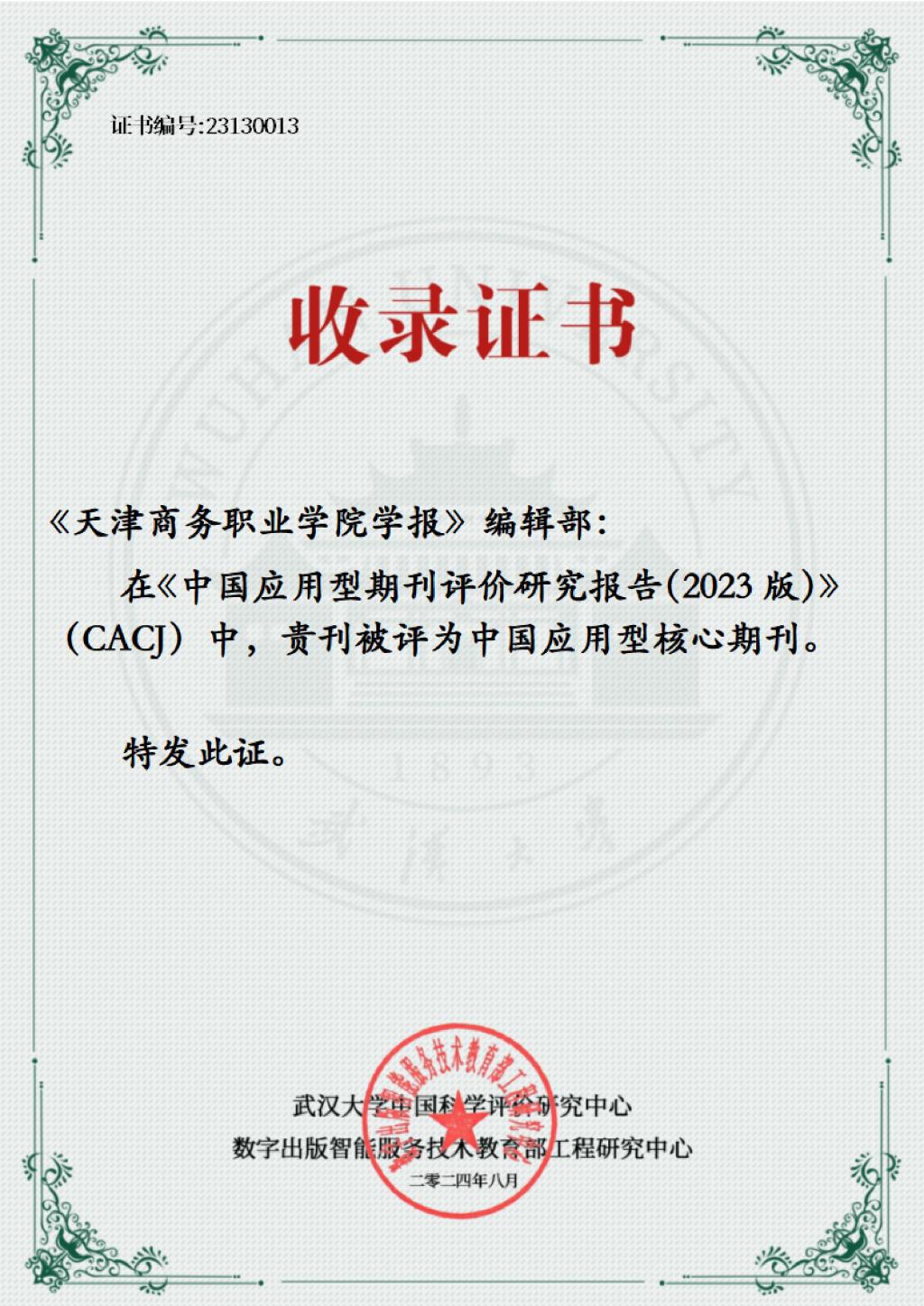 近日,《中國應用型期刊評價研究報告(2023版)》(CACJ)發(fā)布,我校主辦的《天津商務職業(yè)學院學報》入選“中國應用型核心期刊”。