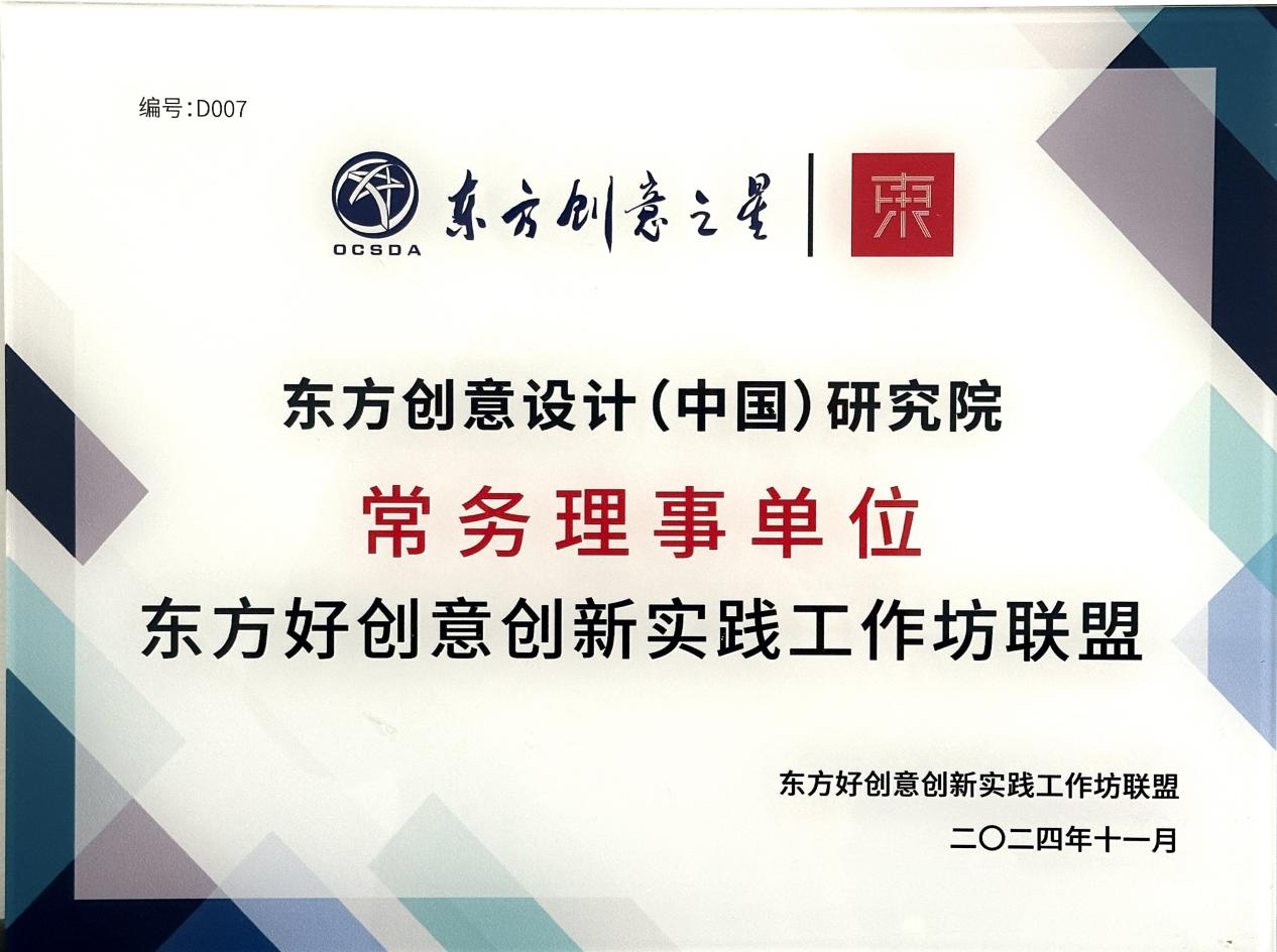 2024年11月22日,東方好創意創新實踐工作坊聯盟成立儀式,與第三期設計領域產教融合研修班暨東方好創意創新AIGC工作坊及第七屆中國國際工業設計博覽會工業設計產教融合分論壇在武漢同步進行。天津商務職業學院人工智能與科技藝術協同創新中心榮獲聯合發起常務理事單位。“東方好創意設計實踐工作坊聯盟”的成立,旨在通過高校間的合作,共同培養師生的創新思維與設計能力,傳承和弘揚中華優秀傳統文化,促進跨學科交流與合作,提升職業素養和實踐經驗,響應社會需求和產業發展,逐步形成品牌效應,建立起知名度和美譽度。
