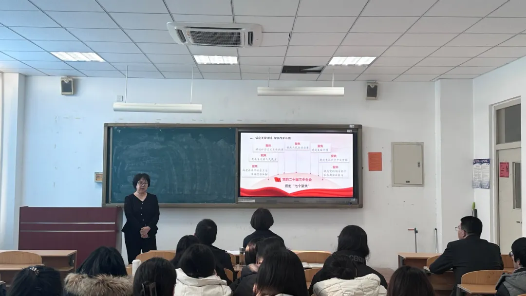 黃鳳羽校長圍繞“新時代新征程 答好進一步全面深化改革這道題”帶領同學們深入學習領會黨的二十屆三中全會精神,從把握歷史主動、錨定關鍵領域、遵循改革規律三個方面深入闡釋了黨的二十屆三中全會所具有的里程碑意義,結合專業背景、發展前景以及剛剛召開的天津市教育大會精神為同學們講授了一堂精彩的形勢與政策課,鼓勵同學們努力學習專業知識,實現技能報國。