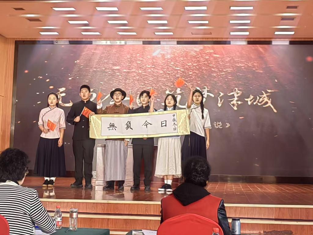 近日,由市委教育工委、市教委聯(lián)合主辦的2024年天津市大中小學(xué)“我和我求學(xué)的城市”主題教育活動(dòng)——《紅色朗讀之星》市級展演活動(dòng)在天津外國語大學(xué)舉辦。我校馬克思主義學(xué)院郭曉月、鄧新星兩位老師帶領(lǐng)國際貿(mào)易學(xué)院學(xué)生編演的原創(chuàng)情景朗誦作品《無負(fù)今日 筑夢津城》榮獲高校組三等獎(jiǎng)。