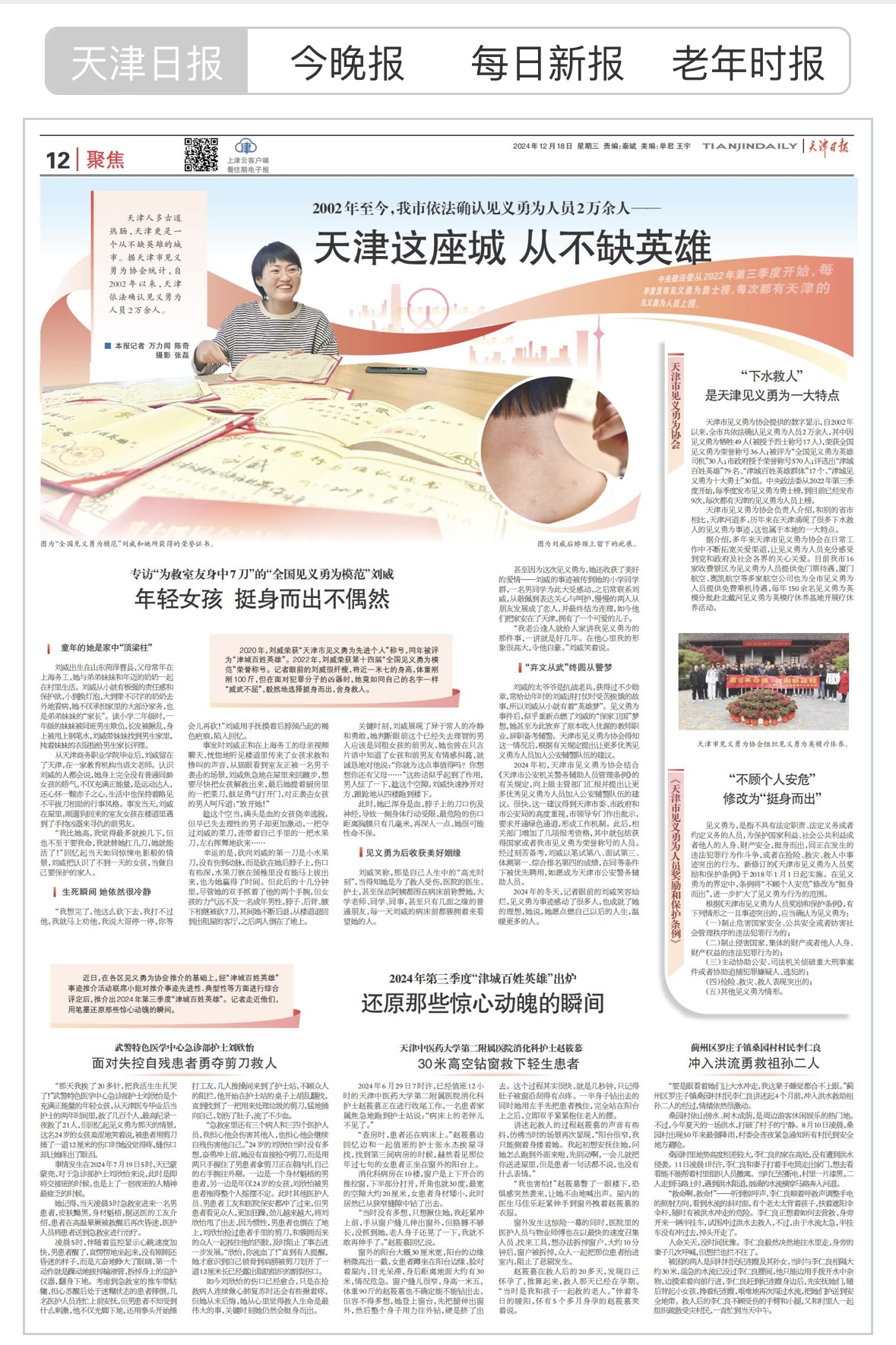 天津人多古道熱腸,天津更是一個從不缺英雄的城市。據天津市見義勇為協會統計,自2002年以來,天津依法確認見義勇為人員2萬余人。