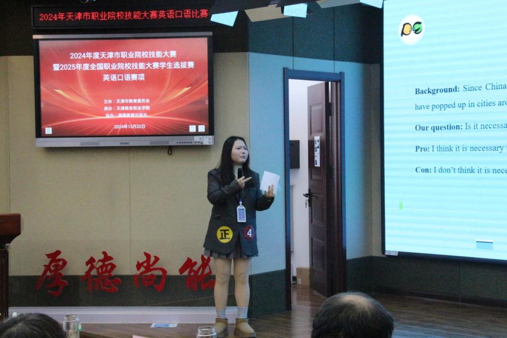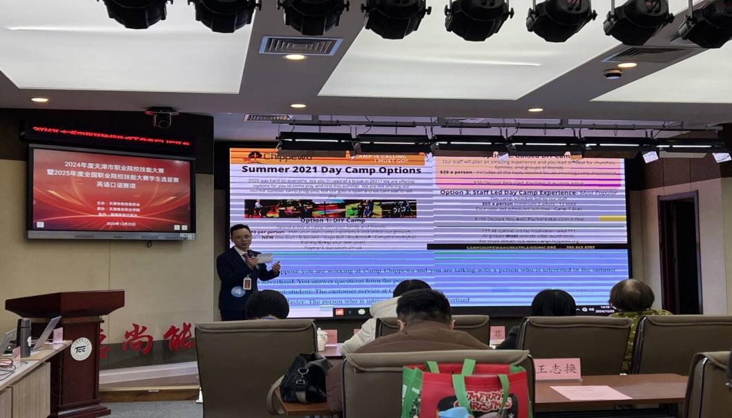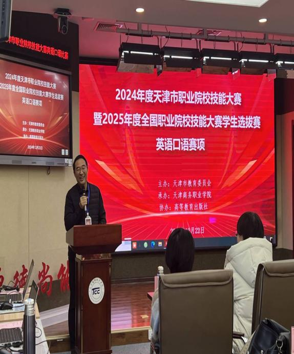 12月22日,由天津市教育委員會主辦、天津商務職業學院承辦、高等教育出版社協辦的2024年度天津市職業院校技能大賽暨2025年度全國職業院校技能大賽學生選拔賽英語口語賽項比賽在我校舉辦。來自天津市17所高職院校的22名選手同臺競技,學校黨委委員、副校長武春平出席。