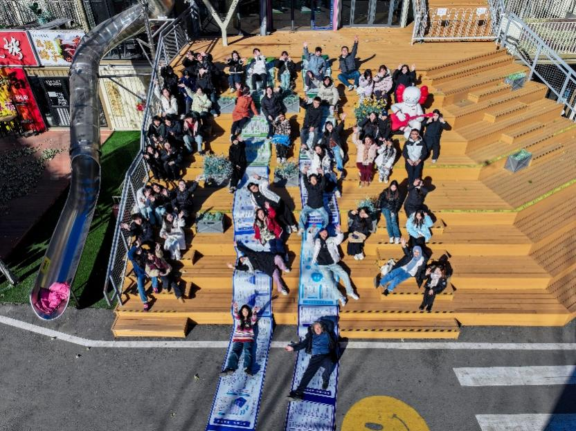 2024年12月22日,校團委聯合廣告學院在津南綠動BOX創意街區舉辦了一場別開生面的創意活動。由廣告學院自主研發的活頁教材被印成了80米長的地毯,地毯被創意訓練營的各學院同學帶到了綠動BOX創意街區展示,成為一道靚麗的風景線。