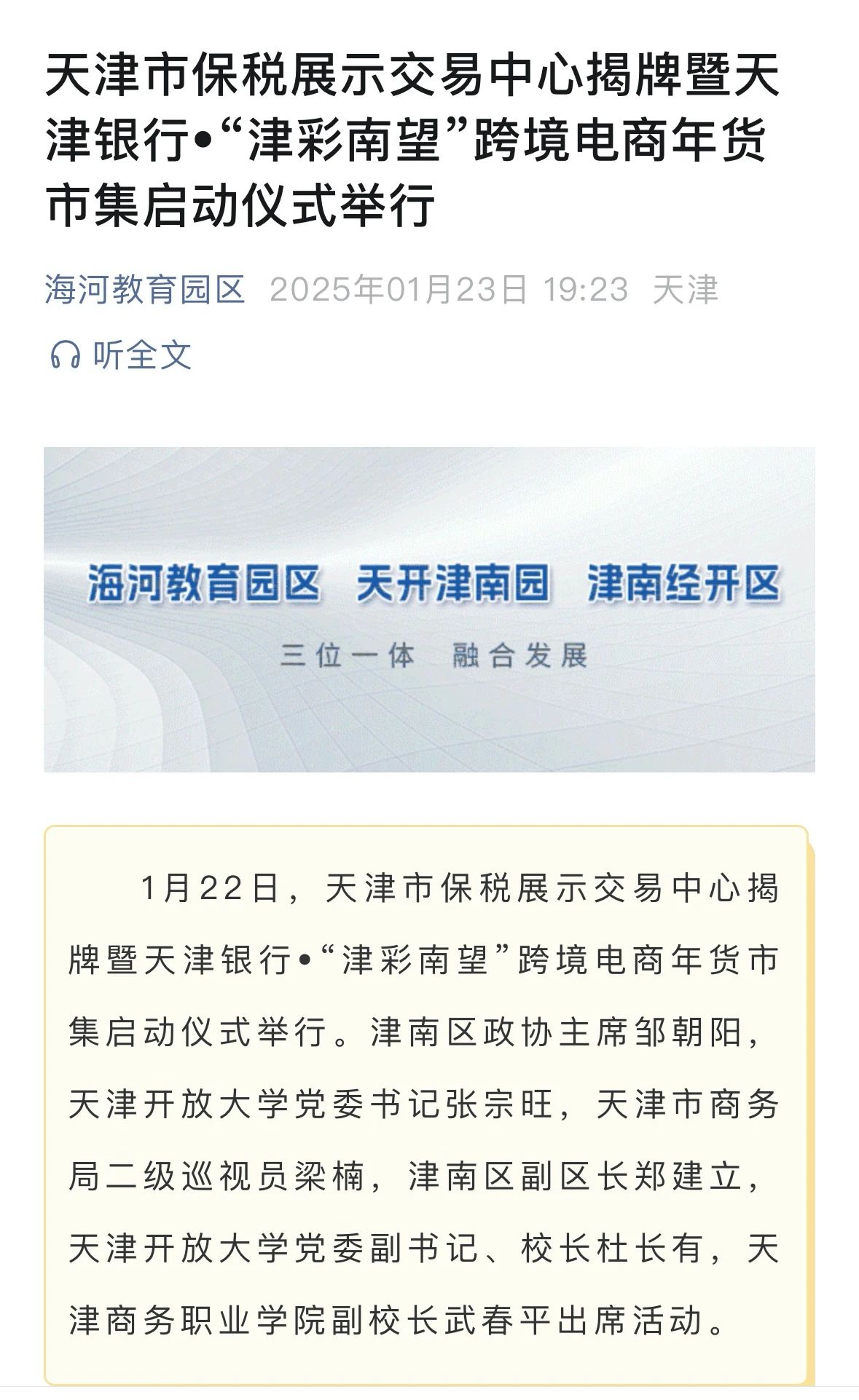 媒體關(guān)注 | 【海河教育園區(qū)】天津市保稅展示交易中心揭牌暨天津銀行?“津彩南望”跨境電商年貨市集啟動(dòng)儀式舉行