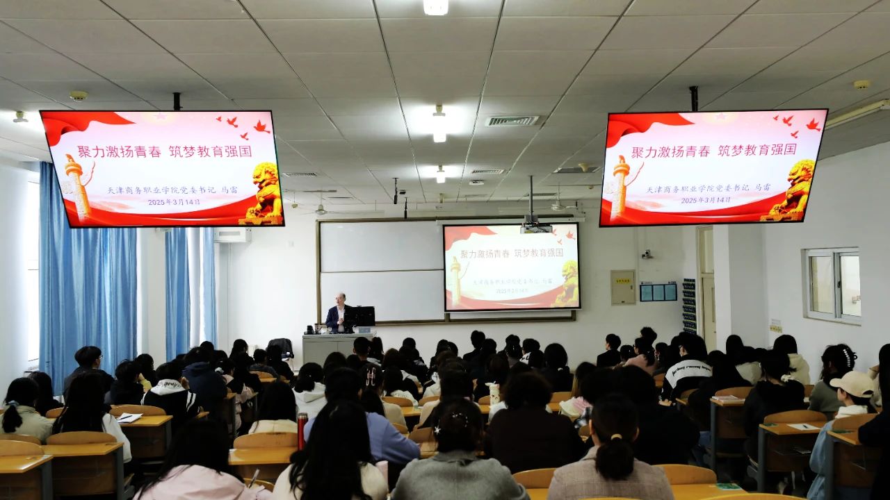 馬雷書記以馬克思主義發展歷史為切入點,通過新時代中國特色社會主義建設偉大成就,運用中外橫向對比和今昔縱向對比等教學方法,深刻分析論證了馬克思主義的科學性和真理性,重點闡釋了習近平新時代中國特色社會主義思想是“當代中國馬克思主義、二十一世紀馬克思主義”這一理論表述,著重強調了在新時代新征程廣大師生要深刻領悟“兩個確立”的決定性意義,堅決做到“兩個維護”,堅定四個自信。隨后,馬雷書記結合《教育強國建設規劃綱要(2024—2035年)》,圍繞建設教育強國的重大歷史意義、具體目標和政策措施等內容,全面分析了我國教育事業特別是職業教育未來發展的美好前景。馬雷書記勉勵同學們要以“好好學習 天天向上”為人生信條,感恩偉大時代,珍惜青春年華,堅定信心,腳踏實地,學好專業知識和技能,在推進教育強國建設、民族復興偉業中展現青春作為、彰顯青春風采、貢獻商職力量。