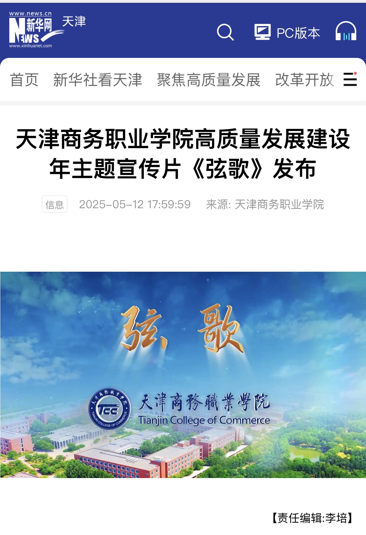 媒體關注 | 【新華網】天津商務職業學院高質量發展建設年主題宣傳片《弦歌》發布