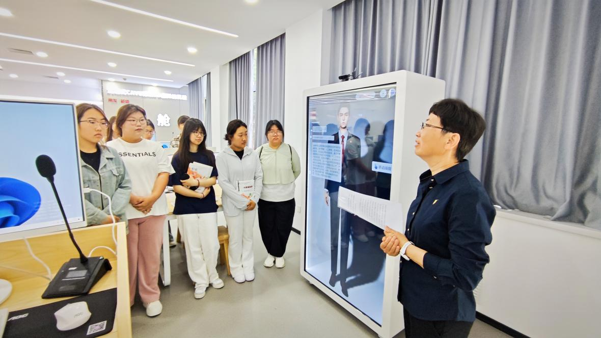 周寶玲帶領學生走進智能投顧虛擬仿真實訓基地,體驗沉浸式CAVE裸眼3D虛擬仿真艙,直觀感受“AI金融數智教練”仿真實訓的超強功能,該項目獲評第二屆教育數字人大賽一等獎,激勵學生以專業實踐提升專業素養與各方面綜合能力。