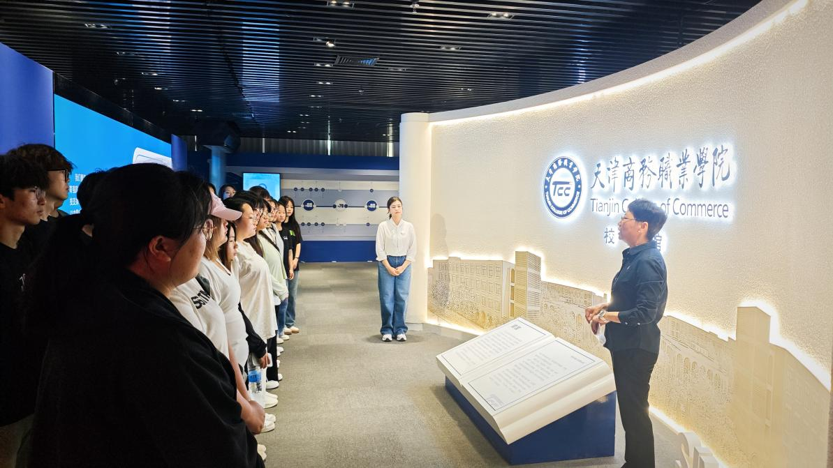 為深入學習貫徹黨的二十大和二十屆二中、三中全會精神,深入貫徹落實習近平文化思想以及習近平總書記視察天津重要講話精神,5月28日,學校黨委委員、紀委書記周寶玲深入金融學院金融科技應用專業2402班,組織帶領學生到學校校史館暨廣告設計體驗中心、周恩來鄧穎超紅色家風專題展、中國特色金融文化長廊、智能投顧虛擬仿真實訓基地等育人教學實踐場景進行互動體驗,為學生講授了一堂“行走的”形勢與政策課。