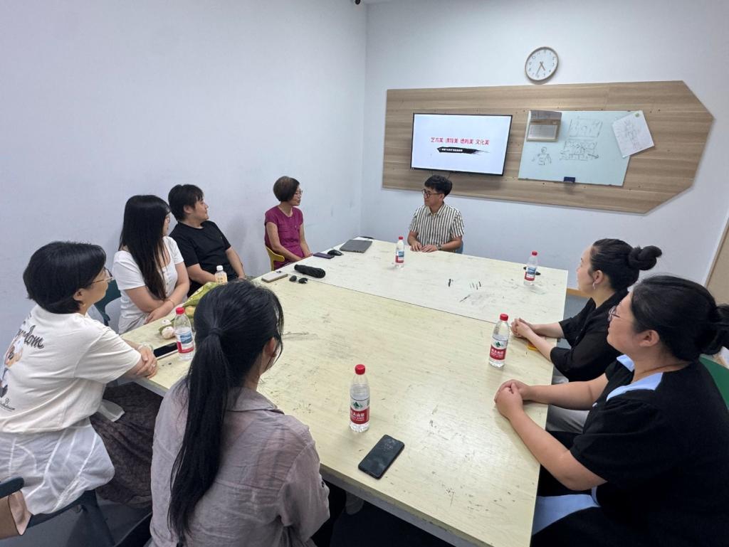 隨后,團(tuán)隊(duì)前往禾禾美學(xué)館。老師們深入?yún)⒂^了陶藝工作室、動(dòng)漫與數(shù)字媒體工作室、西方畫工作室及書法工作室,實(shí)地考察了各藝術(shù)門類的教學(xué)環(huán)境與實(shí)踐流程。參觀結(jié)束后,校企雙方圍繞“藝術(shù)美、課程美、德育美、文化美”的核心主題展開座談。就如何將多元藝術(shù)形式有效融入美育課程體系,如何在藝術(shù)實(shí)踐中深化德育內(nèi)涵、傳承優(yōu)秀文化、打造數(shù)智美育建設(shè)路徑等關(guān)鍵議題進(jìn)行深入交流和探討。