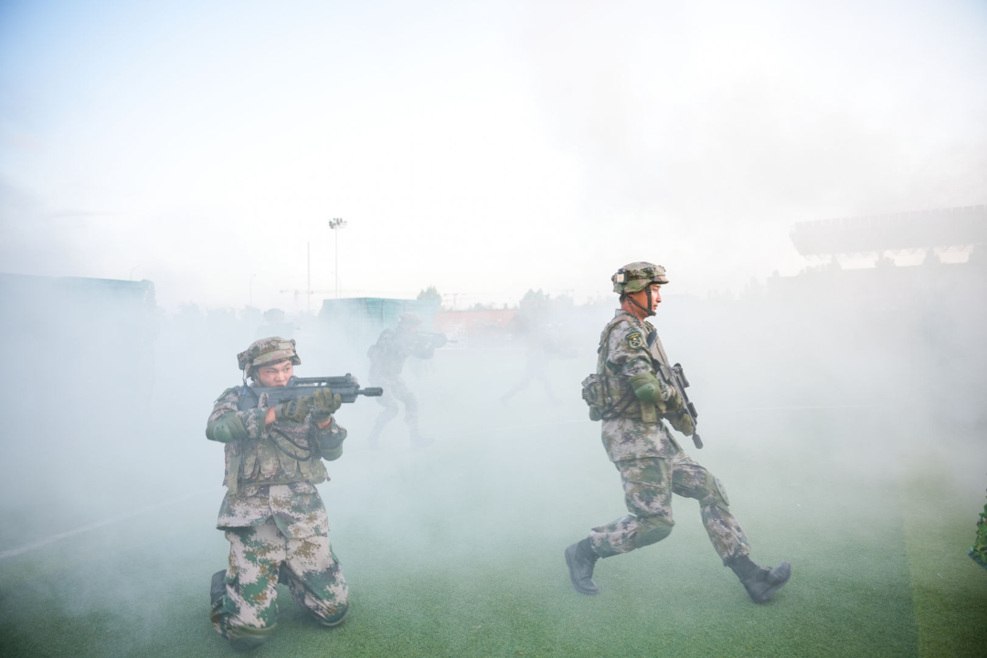 大會在莊嚴的國歌聲中拉開序幕。受訓方隊依次進行展示,并進行了匕首操、刺殺操、軍體拳和戰術演練匯報,充分展現了軍訓成果。