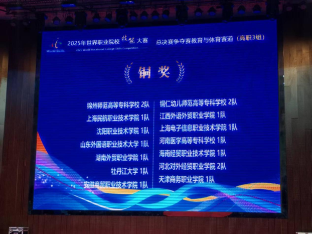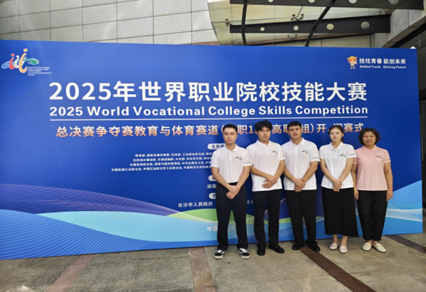 8月27日至31日,2025年世界職業院校技能大賽總決賽教育與體育賽道(高職1組、高職3組)在長沙民政職業技術學院舉行。來自全國28個省(自治區、直轄市)141所職業院校的169支參賽隊伍齊聚一堂,展開激烈角逐。我校應用外語學院王志換、馮巖巖兩位教師指導的夏渤懿、王皓萱、錢致遠、排黑爾丁?西爾艾力四位同學憑借扎實的專業功底和穩定的現場發揮,榮獲該賽道銅獎,為學校爭得榮譽。