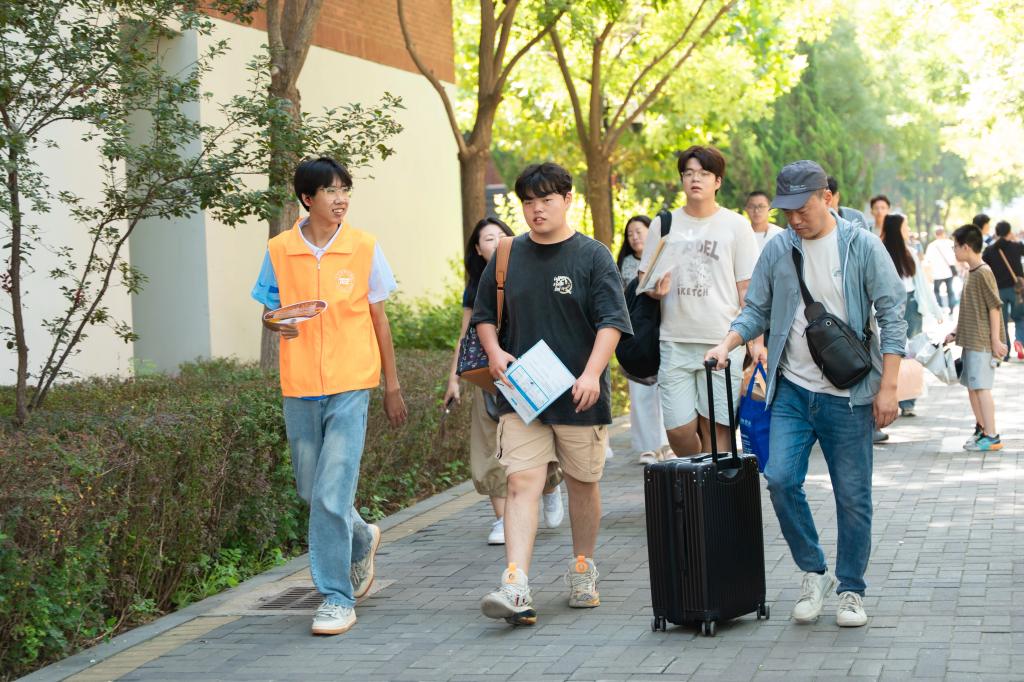 商職故事的開始,是從一個家到另一個家。學校提前規劃、周密部署,將貼心服務貫穿迎新全程。校門口,志愿者手執指示牌,耐心為新生與家長講解報到流程和宿舍路線,主動上前接過行李,步履輕快地帶路引導;各報到點前,老師們高效核驗信息、辦理手續,減少等待時間;各二級學院也紛紛“花式”迎新,定制打卡展板、設計學院專屬貼紙,匠心獨具地布置特色迎新環節,以創意和熱情為新同學們送上別具一格的“見面禮”;食堂供應具有天津特色的迎新撈面,并延長用餐時間;浴室延長開放,讓遠道而來的疲憊被熱情的關懷呵護徹底清洗;師生素未謀面卻似相識已久,新生和家長初入校門就深切感受到商職人的無微不至。
