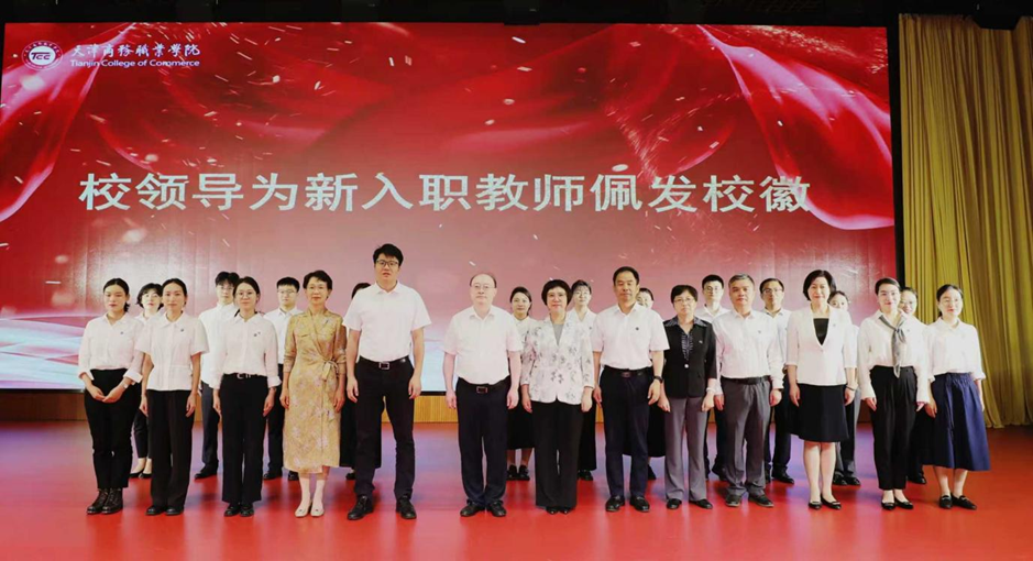 舉行了新入職教師宣誓儀式,與會領導為新入職教師配發校徽。