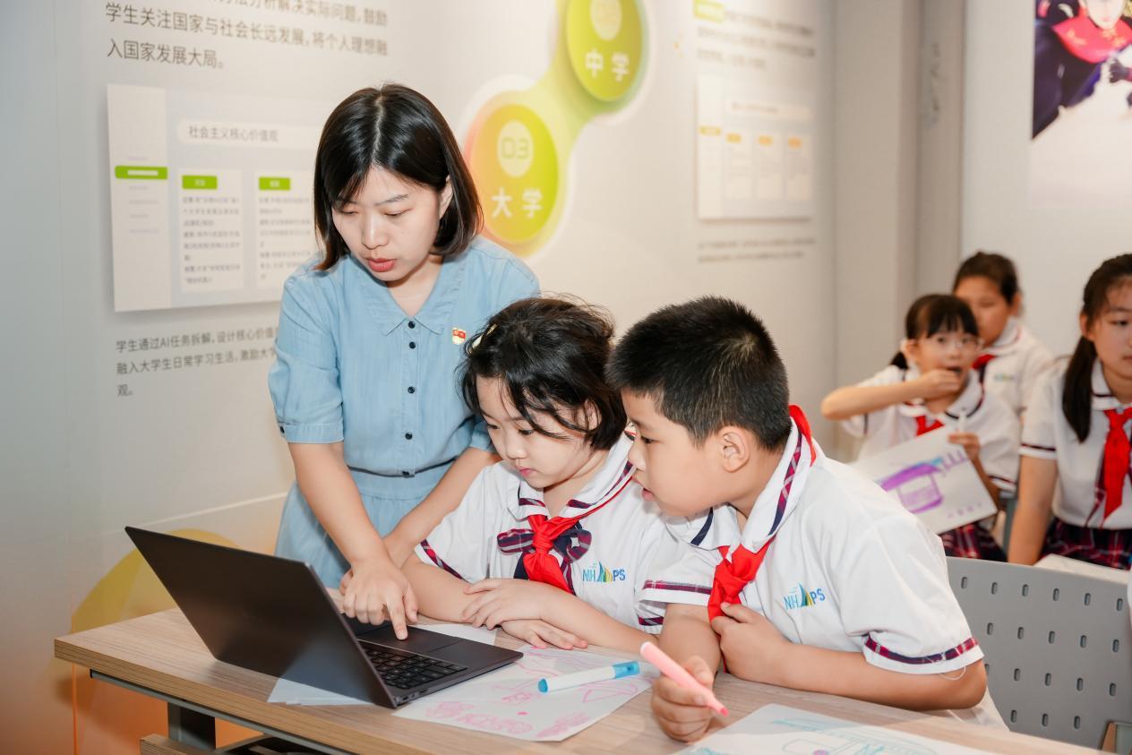 “小朋友們,畫(huà)出心中的‘紅船’吧!”小學(xué)活動(dòng)以“一位先驅(qū)鑄初心,繪紅船承使命,聆聽(tīng)故事對(duì)話革命先賢”為主題,讓孩子執(zhí)筆,通過(guò)“童心向黨” AR手繪館繪紅船、紅旗,借圖生文技術(shù)生成黨史故事。隨后在紅色人物AI交互區(qū),孩子們圍著智能體追問(wèn)“于方舟爺爺怎么帶領(lǐng)大家革命”,在趣味問(wèn)答中,愛(ài)國(guó)愛(ài)黨的種子悄然扎根心田。