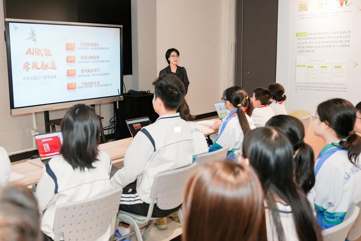 近日,天津商務(wù)職業(yè)學(xué)院 AI + 藝術(shù)思政協(xié)同創(chuàng)新中心內(nèi)氣氛熱烈——來(lái)自天津商務(wù)職業(yè)學(xué)院、北京科技大學(xué)天津?qū)W院、天津市第四十二中學(xué)、天津市匯文中學(xué)、天津市河西區(qū)南湖小學(xué)、天津市河西區(qū)湘江道小學(xué)的師生代表齊聚于此,同上一堂以“堅(jiān)持黨的全面領(lǐng)導(dǎo)”為主題的思政課,推動(dòng)習(xí)近平新時(shí)代中國(guó)特色社會(huì)主義思想入腦入心。通過(guò)“四階遞進(jìn)?虛實(shí)融通”的創(chuàng)新范式,將天津本地紅色資源與人工智能前沿技術(shù)深度融合,推動(dòng)思政小課堂與社會(huì)大課堂同頻共振,構(gòu)建起“認(rèn)知—體驗(yàn)—踐行”的一體化育人體系,為新時(shí)代思政教育注入了鮮活的科技動(dòng)能。