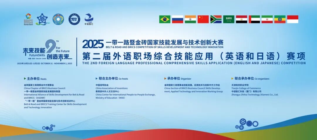 逐夢(mèng)天津,技綻未來!2025“一帶一路”暨金磚國家技能發(fā)展與技術(shù)創(chuàng)新大賽之第二屆外語職場(chǎng)綜合技能應(yīng)用(英語和日語)賽項(xiàng)決賽將于10月31日—11月2日在天津商務(wù)職業(yè)學(xué)院舉辦。