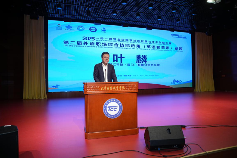 中語智匯科技(廈門)有限公司總經理葉麟在開幕式上表示,作為本次大賽的聯合承辦單位,中語智匯始終致力于以科技賦能外語教育,以創新驅動能力培養。此次大賽采用的“外語職場綜合技能賽訓平臺”,將真實商務場景融入競賽,借助智能化技術手段,推動“學、練、賽、創”一體化育人模式,在實戰中錘煉專業素養,在挑戰中拓寬職業視野,為學生提供了從理論到實戰的全鏈路支持。