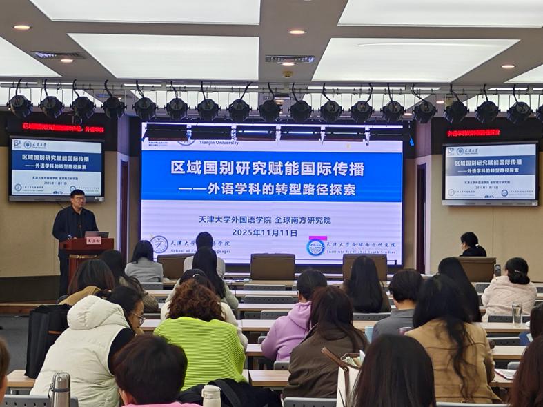 天津商務(wù)職業(yè)學(xué)院2025年學(xué)術(shù)活動(dòng)周正式啟幕,首場(chǎng)學(xué)術(shù)講座《區(qū)域國(guó)別研究賦能?chē)?guó)際傳播:外語(yǔ)學(xué)科的轉(zhuǎn)型路徑探索》于11月11日下午在應(yīng)用外語(yǔ)學(xué)院409會(huì)議室舉辦。本次活動(dòng)由學(xué)校科研處主辦、公共外語(yǔ)教學(xué)部承辦,公共外語(yǔ)教學(xué)部與應(yīng)用外語(yǔ)學(xué)院50余名外語(yǔ)教師參加本場(chǎng)講座。