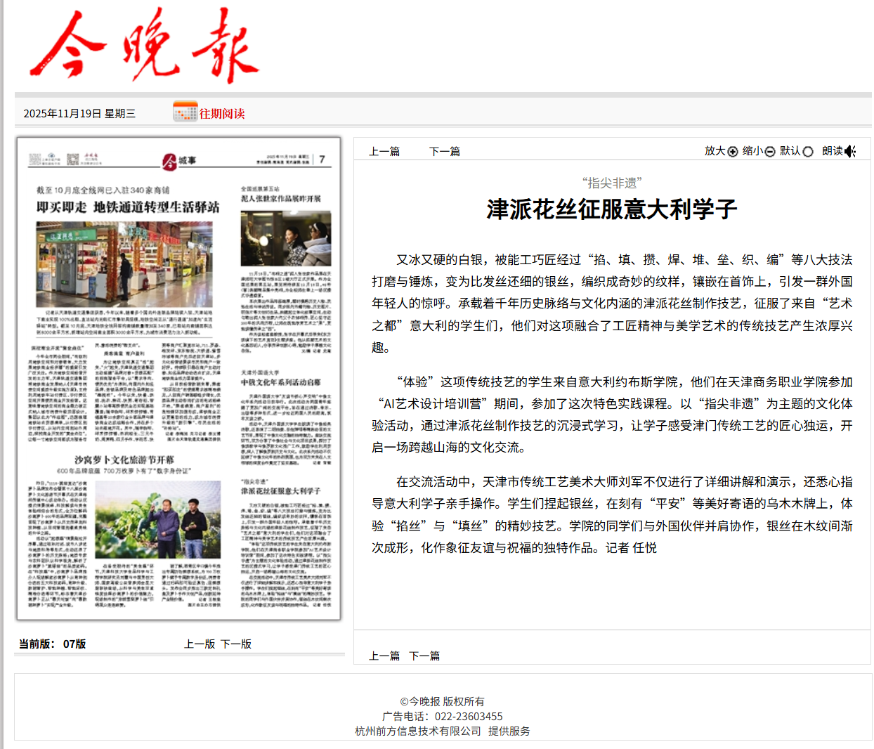 媒體關注 |【今晚報】“指尖非遺”——津派花絲征服意大利學子