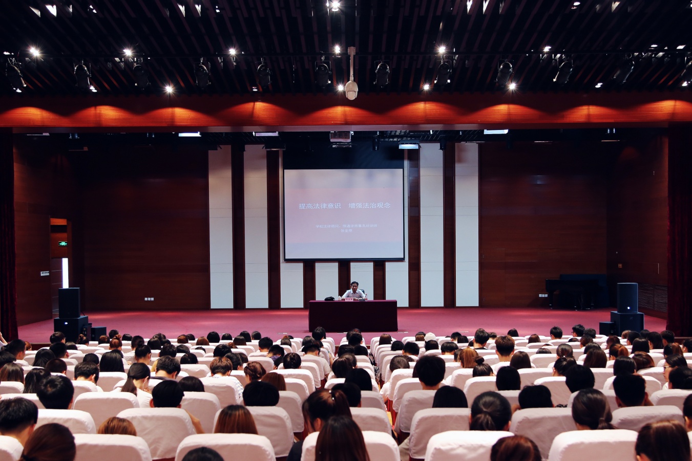 為加強(qiáng)《憲法》等法律法規(guī)的學(xué)習(xí)宣傳,深入推進(jìn)法治校園建設(shè),進(jìn)一步強(qiáng)化師生的法治思維,普及法律知識,6月26日,學(xué)校辦公室和工會聯(lián)合舉辦法治講座,邀請學(xué)校法律顧問、天津悟通律師事務(wù)所張金鼎律師,圍繞“提高法律意識,增強(qiáng)法制觀念”的主題,為學(xué)校400余名師生做精彩宣講。