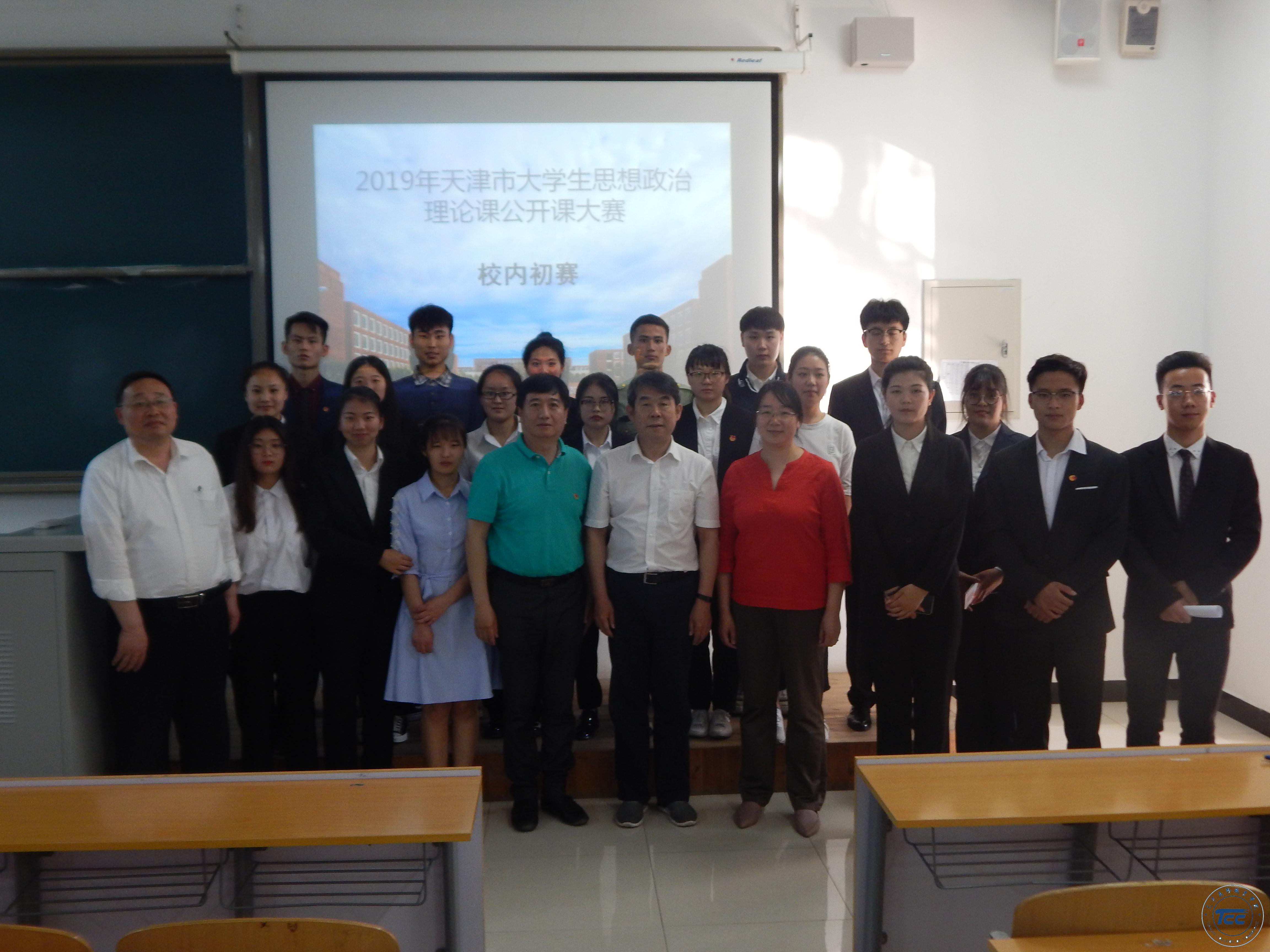 本次校內初賽共有來自6個二級學院的41支學生代表隊參加,參賽規模創歷史新高。上述41支學生代表隊分別參加了《基礎》組、《概論》組和《形勢與政策》組三個組別的校內初賽,賽前,全體思政課專兼職教師對各自指導的學生參賽團隊進行了悉心指導。經過緊張而激烈的角逐,最終選拔出營銷學院潘超團隊、應用外語學院周潮龍團隊和營銷學院董亞奇團隊代表學校參加2019年天津市高校大學生思想政治理論課公開課大賽復賽。
