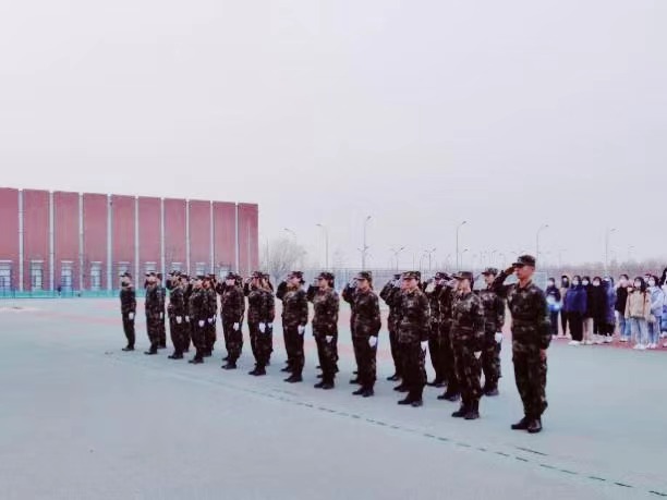 早上7:00晨曦微露,英姿颯爽的國旗護衛隊,邁著鏗鏘整齊的步伐昂揚入場。國歌聲奏響,五星紅旗冉冉升起,全體人員行注目禮。在莊嚴肅穆的氛圍里,師生共同回憶歷史,緬懷革命先輩,重溫“一二?九”精神。