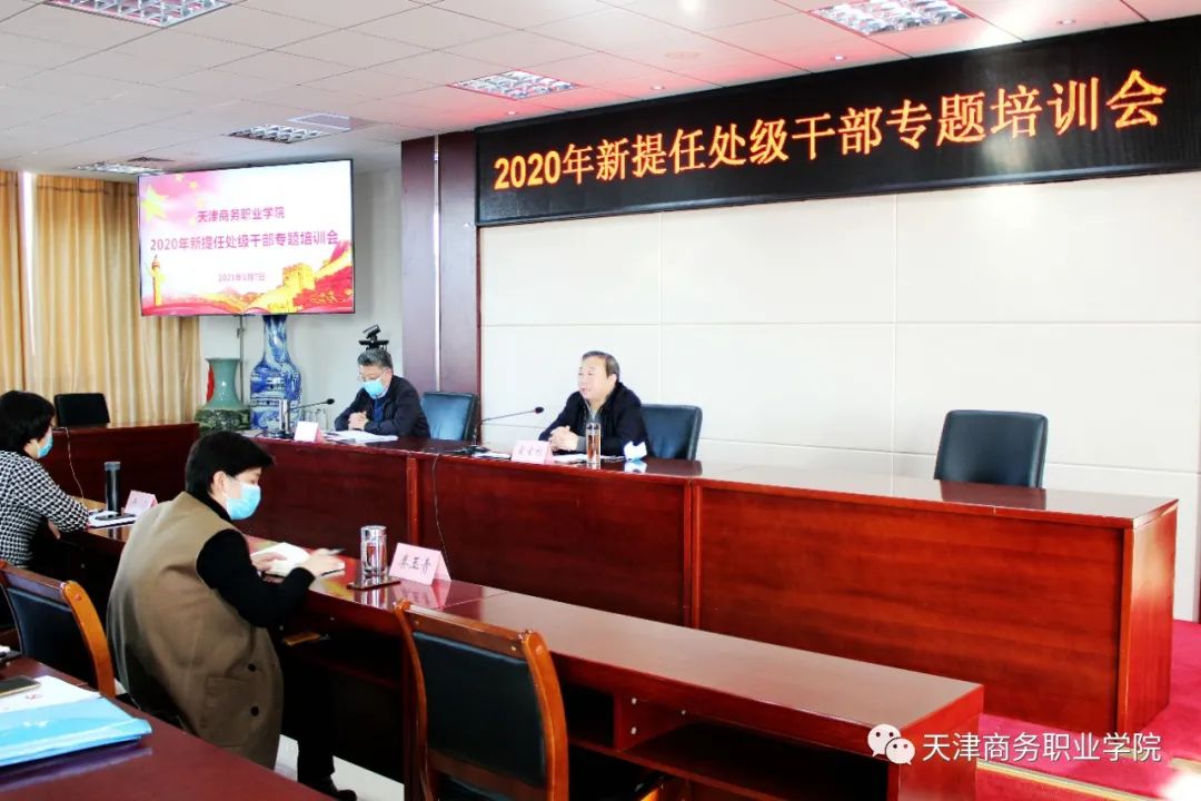 為進一步加強新提任處級干部責任意識和管理水平,1月7日下午,我校在行政會議中心311室召開2020年新提任處級干部專題培訓會。黨委書記宮寶利同志作專題培訓,黨委副書記徐琤穎同志主持,黨委組織部、宣傳部、統戰部部長及2020年度新提任的15名處級干部參會。