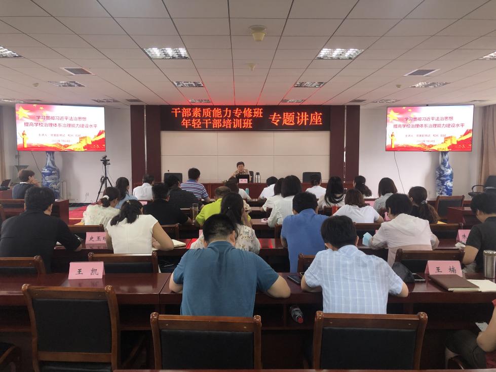 為進一步深化黨史學習教育成果,提升我校青年干部綜合素質,7月14日上午,學校黨委副書記、校長劉欣同志為干部素質能力提升班、年輕干部培訓班學員作題為“學習貫徹習近平法治思想,提高學校治理體系治理能力建設水平”專題講座。