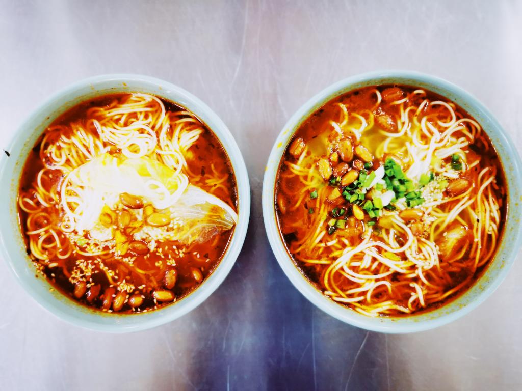 從疲憊到元氣滿滿,大概只要一碗面的時間,從窗口端出來,還有剛出鍋的熱氣,在撒好的圓白菜、牛肉片和香菜下,是既有嚼頭又入味的面條。湯頭清澈,味道卻濃郁,稍加一點醋和辣椒,就可以吃一大碗。