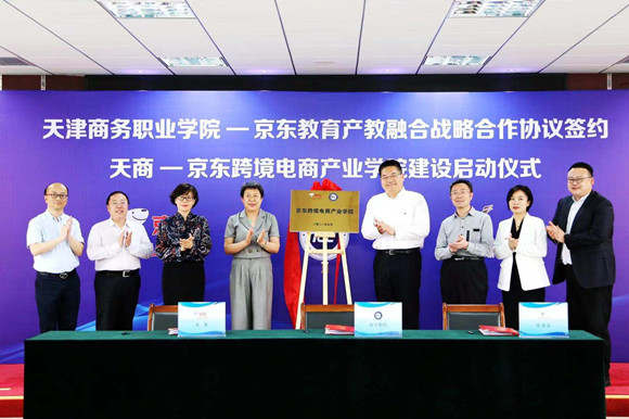 深化產教融合,探索校企合作新模式,于2021年5月24日簽署了天津商務職業學院-京東教育產教融合戰略協議,并啟動了京東跨境電商產業學院的建設工作。以產業學院為依托,京東集團積極對接學校國際貿易專業群建設,成立校企協同共同體,重點在跨境電子商務等專業進行校企共建共享,包括專業共建、實訓基地共營、大學生創業項目共孵、跨境電子商務人才共培、企業項目共研等多方面加強與學校的合作,力爭產業學院辦出優勢和特色。