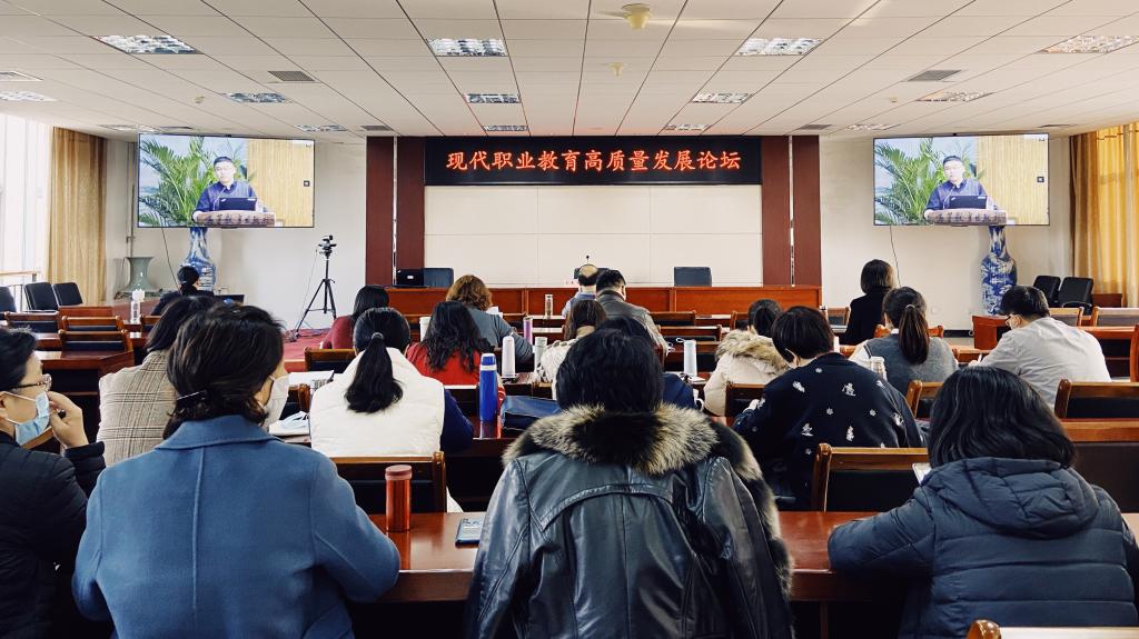 為深入貫徹全國職業教育大會精神,落實中共中央辦公廳、國務院辦公廳印發的《關于推動現代職業教育高質量發展的意見》,推動職業教育高質量發展,加快構建現代職業教育體系,增強職業教育適應性,2021年11月16日上午,教務處組織《意見》領讀會,參加了由教育部職業技術教育中心、研究所主辦的“現代職業教育高質量發展論壇”活動。論壇采用線上會議的方式 ,武春平副校長出席并全程參與論壇活動,各教學單位領導、教研室主任、教師代表及科研處、督導室負責人共計70余人參加。