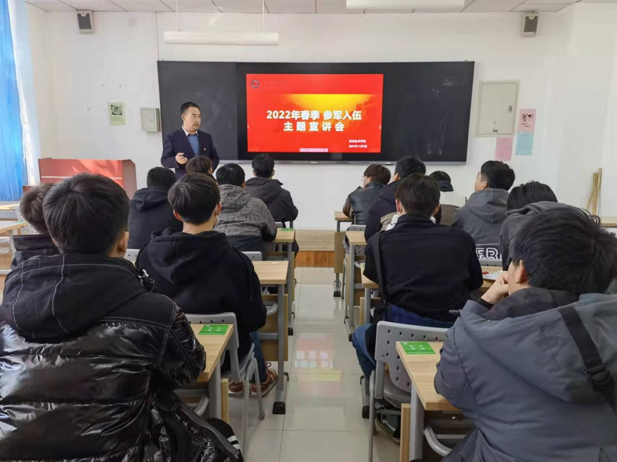 學校黨委學生工作部、學校征兵工作站、各二級專業教學學院征兵工作網格員積極深入學生班級、宿舍開展征兵政策宣講活動,共計開展線下宣講活動8場次,針對大三年級在校外實習情況通過線上方式開展宣傳動員宣講10余場次,積極引導鼓勵畢業年級學生應征入伍。