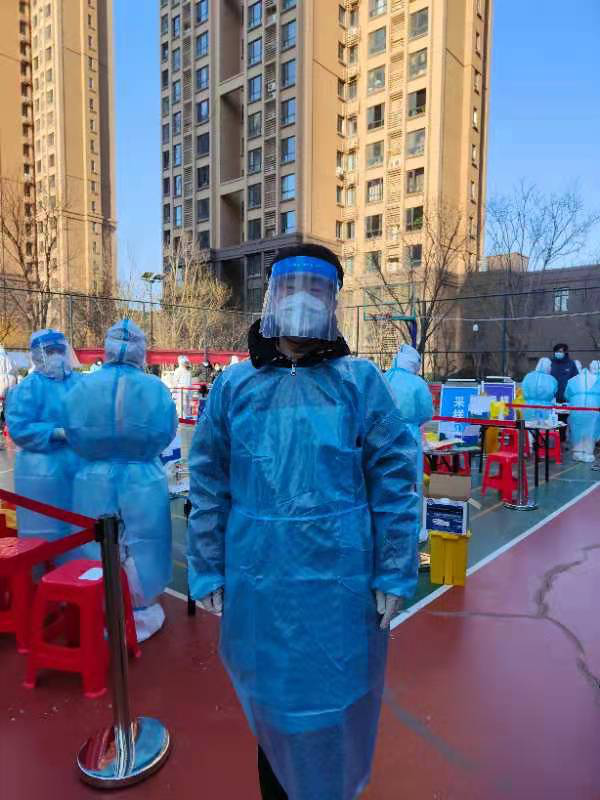 尚會妍老師主動投身疫情防控工作一線,先后參與兩輪大篩工作,負責現場秩序的維護和信息采集。雖然天氣寒冷,檢測工作繁重,但尚老師努力克服各種困難,圓滿完成該片區的兩輪核酸檢測任務。隨后,尚會妍老師又投身到河西區十八局社區的志愿服務崗位,協助社區完成了四篩、五篩、六篩的檢測任務。尚老師表示,只要組織需要,隨時都會投身一線,協助社區做好各項服務,助力早日戰勝疫情!