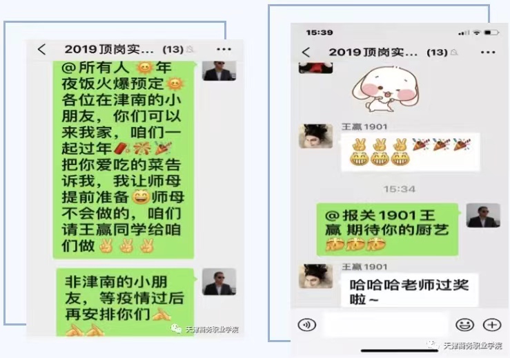在做社區志愿者的同時,張老師還隨時關注著他所負責的在津頂崗實習學生。當接到學生可以返鄉的通知后,張老師第一時間所想到的是安撫那些在津南區無法返鄉的同學。在張援越老師愛人的支持下,張老師熱情邀請在津南區居住的學生春節到他家一起過年,學生和家長深受感動,情緒很快平復下來。