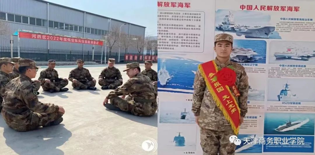 2022年春季征兵,天津商務職業學院在校參軍報名共計96人,入伍體檢和政審雙合格24人,按照役前訓練量化定兵等考核環節,有13名學生成功預定新兵,圓滿完成2022年春季征兵任務,為向軍隊輸送高質量兵員貢獻一份力量。