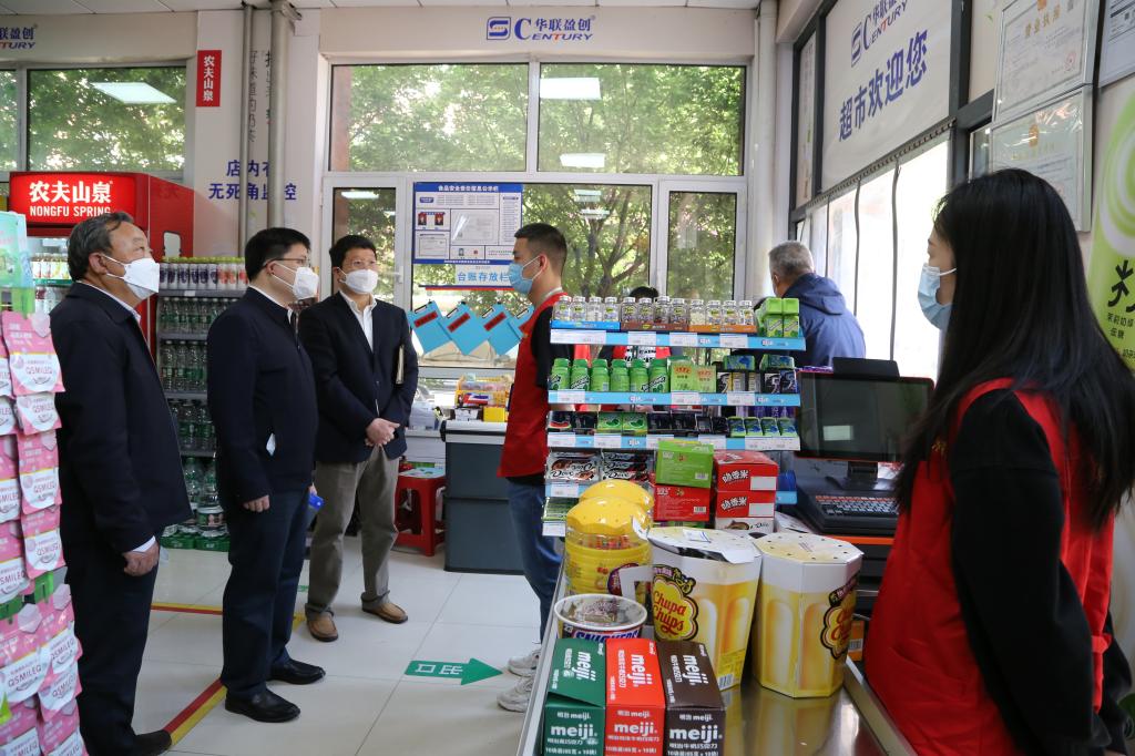 市商務局領導一行實地察看東門學生進校核驗通道、體溫監測區、學生食堂就餐管理、超市通風消殺、宿舍管理及應急處置等重點部位防疫情況,詳細詢問學校保安、宿管、廚師等服務人員的防疫措施,了解防疫知識宣傳、疫情處置流程和防疫物資儲備等情況。聽取了關于學校疫情防控措施落實和復學復課準備工作相關情況匯報,并提出了相關意見。