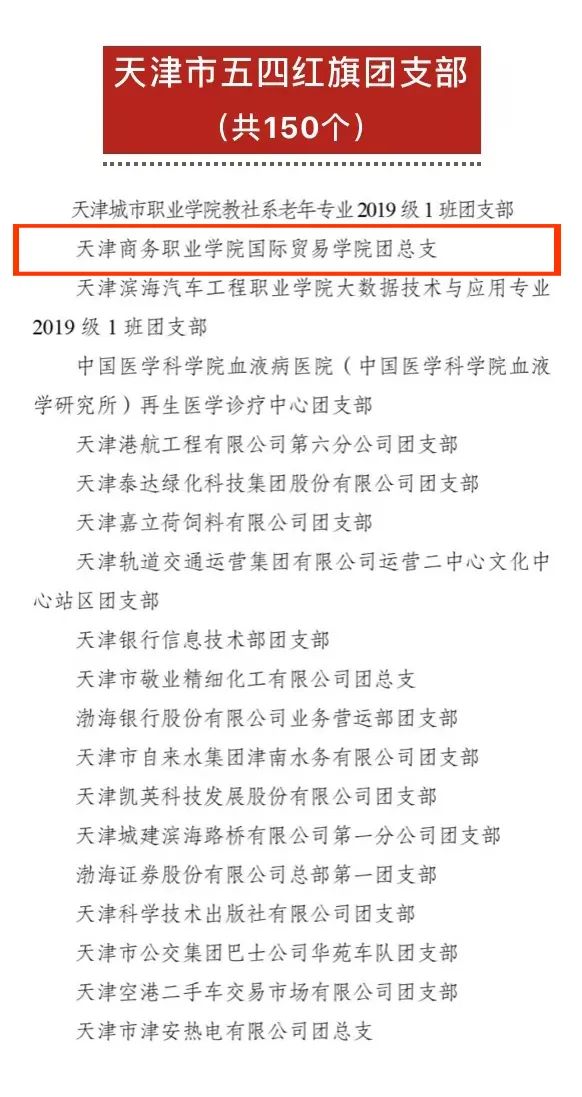 經(jīng)個(gè)人報(bào)名、各級(jí)團(tuán)組織推薦和選拔,最終我校國(guó)際貿(mào)易學(xué)院團(tuán)總支榮獲“天津市五四紅旗團(tuán)支部”稱號(hào);信息技術(shù)學(xué)院2019級(jí)軟件技術(shù)專業(yè)學(xué)生,王月晴榮獲“天津市優(yōu)秀共青團(tuán)員”稱號(hào)。這是天津共青團(tuán)系統(tǒng)授予共青團(tuán)員、共青團(tuán)干部和基層團(tuán)組織的最高榮譽(yù)。