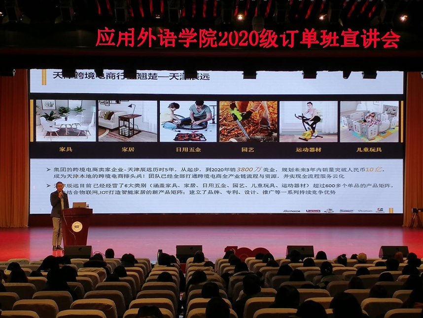 應用外語學院已經(jīng)與近百家優(yōu)質(zhì)企業(yè)簽訂了校企合作協(xié)議,其中包括多家世界500強企業(yè)、行業(yè)領軍企業(yè)、行業(yè)知名企業(yè),為學生實習實訓搭建了廣泛的平臺。與天津辰遠進出口有限公司合作組建的“辰遠訂單班”已順利開班,校企將共同培育符合跨境電商行業(yè)需求的高素質(zhì)技術技能人才。