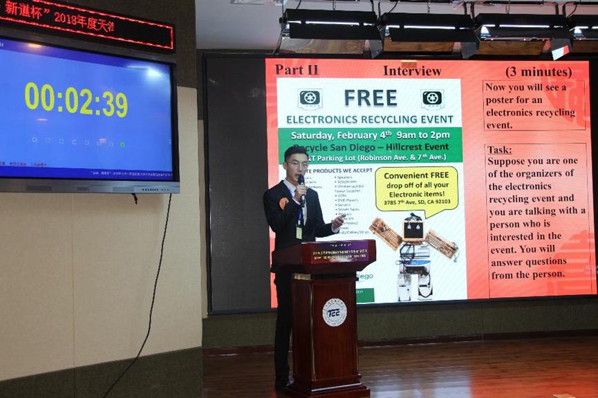 應用外語學院每年承辦天津市高職院校技能大賽英語口語賽項、寫作賽項。技能大賽為教學質(zhì)量的提高和各高職院校之間的交流提供了良好的平臺,應用外語學院積極推動大賽成果轉(zhuǎn)化,不斷提升我校外語教學工作的影響力和競爭力。商務英語專業(yè)學生屢次榮獲天津市乃至全國高職高專英語口語大賽、寫作大賽特等及一、二、三等獎。在2022年4月24日舉辦的2021年天津市職業(yè)院校技能大賽暨2022年度全國職業(yè)院校技能大賽學生選拔賽英語口語賽項中,我院選手李卓軒同學勇奪英語專業(yè)組第一名。