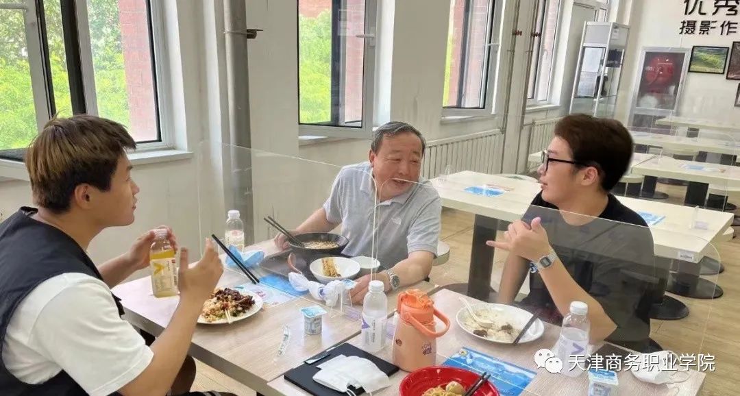 2022年6月7日上午,學(xué)校黨委書(shū)記宮寶利同志來(lái)到八號(hào)公寓廣告學(xué)院廣告2001班男生宿舍,看望在學(xué)校的學(xué)生,主動(dòng)了解班級(jí)學(xué)生返校和返家基本情況,了解學(xué)生目前的學(xué)習(xí)、生活情況,詳細(xì)講解了目前天津市疫情防控的有利形勢(shì),中午宮書(shū)記與學(xué)生代表共進(jìn)午餐,向?qū)W生征求對(duì)學(xué)校目前各種保障服務(wù)的意見(jiàn)建議,同學(xué)們表示,對(duì)學(xué)校學(xué)習(xí)和生活的條件非常滿意,感謝學(xué)校給大家提供的各種便利,感謝領(lǐng)導(dǎo)和老師們關(guān)心。