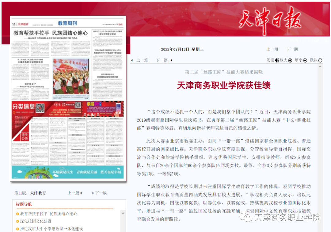 “這個成績不是我一個人的,而是我們整個團隊的!”近日,天津商務職業學院2019級越南籍國際學生祿氏英書,在勇奪第二屆“絲路工匠”技能大賽“中文+職業技能”賽項特等獎后,真切地向指導老師表達自己的感激之情。