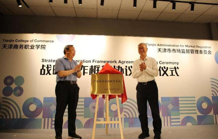 為深入貫徹落實(shí)黨的二十大精神,高標(biāo)準(zhǔn)高質(zhì)量開(kāi)展好學(xué)習(xí)貫徹習(xí)近平新時(shí)代中國(guó)特色社會(huì)主義思想主題教育,推進(jìn)中國(guó)式現(xiàn)代化在津沽大地生動(dòng)實(shí)踐,聚焦落實(shí)天津市“十項(xiàng)行動(dòng)”要求,2023年6月12日,天津商務(wù)職業(yè)學(xué)院與天津市市場(chǎng)監(jiān)督管理委員會(huì)戰(zhàn)略合作框架協(xié)議簽署儀式在天津商務(wù)職業(yè)學(xué)院舉行。十二屆市委委員、天津市市場(chǎng)監(jiān)督管理委員會(huì)黨組書(shū)記、主任戴東強(qiáng),天津市市場(chǎng)監(jiān)督管理委員會(huì)二級(jí)巡視員王嘉杰,天津市津南區(qū)市場(chǎng)監(jiān)管局黨委書(shū)記、局長(zhǎng)于俊東,天津市市場(chǎng)監(jiān)督管理委員會(huì)廣告監(jiān)管處副處長(zhǎng)宗紅哲及有關(guān)部門(mén)負(fù)責(zé)同志;天津商務(wù)職業(yè)學(xué)院黨委書(shū)記宮寶利,黨委副書(shū)記、校長(zhǎng)劉欣,副校長(zhǎng)武春平,廣告學(xué)院領(lǐng)導(dǎo)班子成員以及廣告學(xué)院30余名師生代表出席儀式。