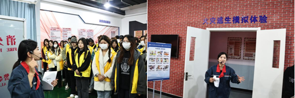 講解員首先向現場師生詳細介紹了各類消防裝備器材的使用方法和注意事項。其次通過火災隱患排查、模擬報火警、滅火器的選擇、逃生面罩的使用及火場逃生等沉浸式體驗幫助學生提高自救能力,最后帶領學生進行了心肺復蘇全流程實踐。