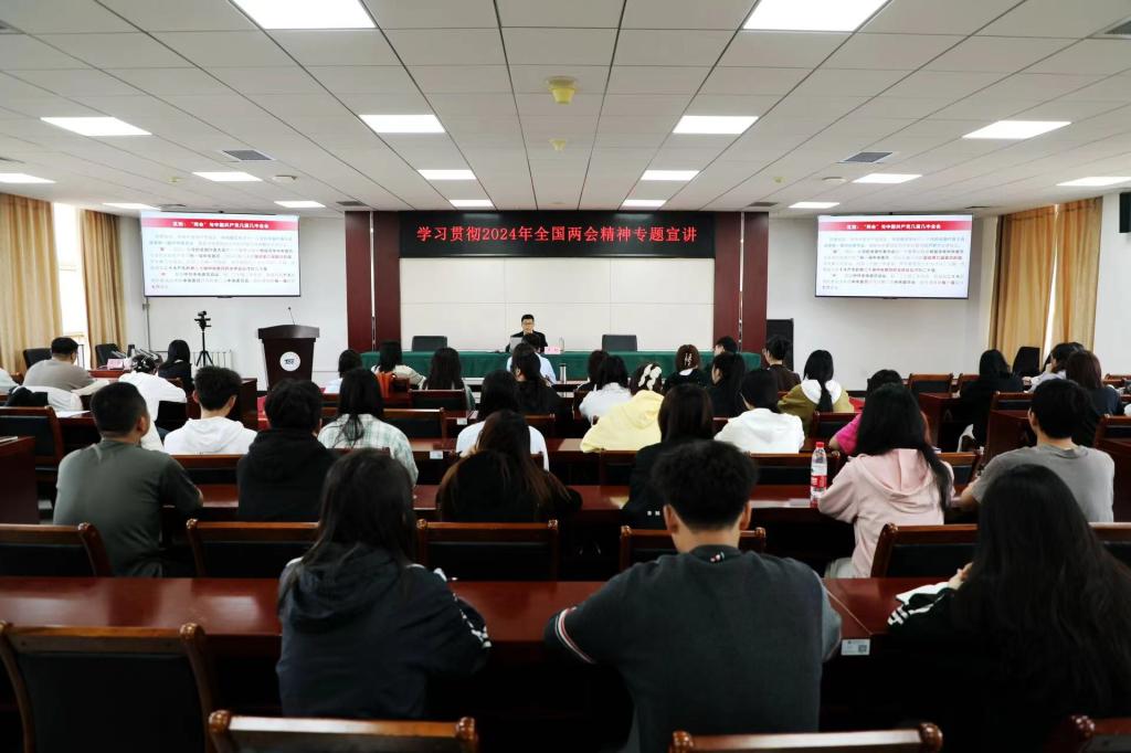 為深入學習貫徹習近平總書記在全國兩會期間的重要講話和全國兩會精神,4月12日下午,學校邀請中共天津市委黨校羅瓊教授進行了2024年全國兩會精神專題宣講。全體組織員、入黨積極分子和團員代表聆聽了宣講。