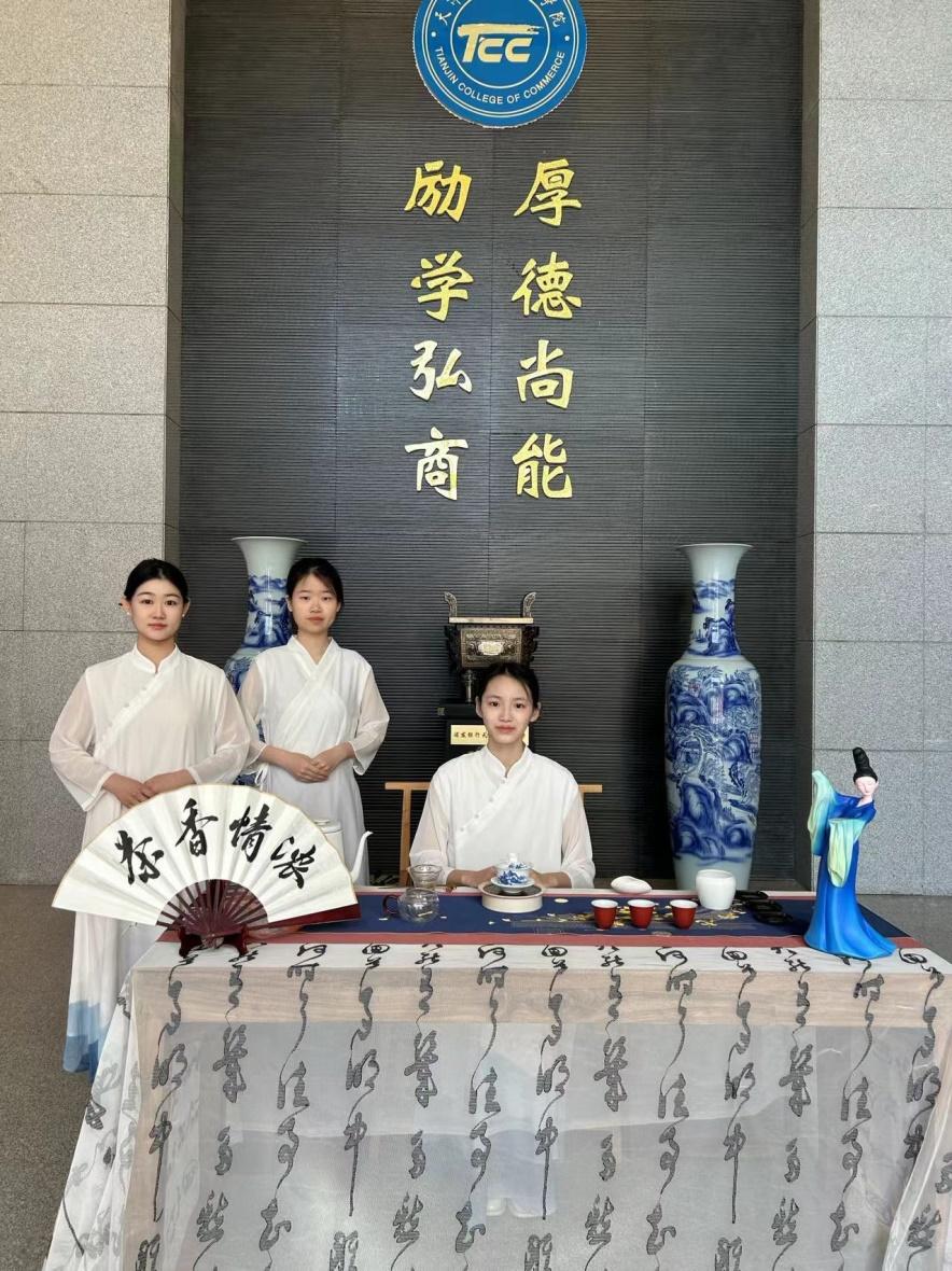 一盞茶中,映射出千年的輝煌歷程和傳統(tǒng)文化的熠熠之光。茶藝這一門古老而又時(shí)尚的文化正在被越來(lái)越多的人所熟知和欣賞,在傳統(tǒng)文化氛圍濃郁的天津商務(wù)職業(yè)學(xué)院校園里,茶藝社團(tuán)面向廣大莘莘學(xué)子,在傳承茶文化,豐富校園文化生活,陶冶學(xué)生情操方面發(fā)揮著越來(lái)越重要的作用。從動(dòng)手開(kāi)始,把文字知識(shí)變?yōu)閷?shí)實(shí)在在的手藝成果,讓更多的學(xué)生學(xué)習(xí)茶道、了解茶歷史、熱愛(ài)茶文化,感受到茶文化的精神內(nèi)涵。