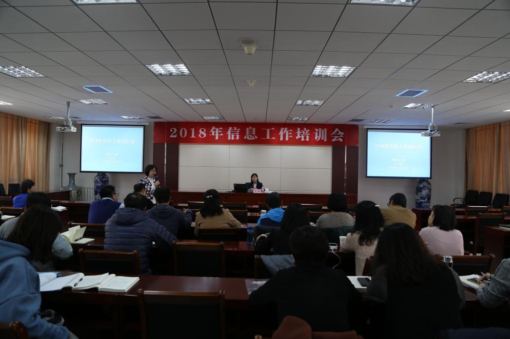 11月20日,學校黨委辦公室和辦公室聯合組織召開2018年信息工作培訓會,邀請市商務局辦公室王媛授課。各部門相關負責人、信息員、各黨總支部、直屬黨支部宣傳委員及年輕干部培訓班學員60余人參加培訓。