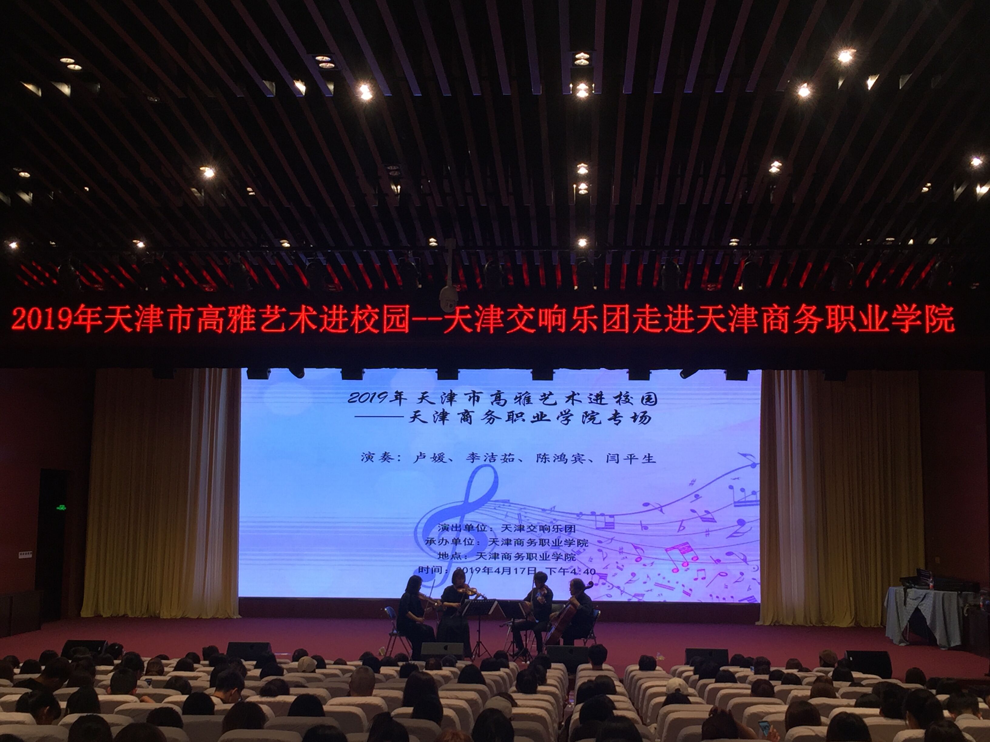 為進一步學習貫徹習近平新時代中國特色社會主義思想,堅定“四個自信”,尤其是加強中華優秀傳統文化傳播,根據市教委統一部署,4月17日,天津交響樂團田園四重奏組合專場音樂會在學校報告廳成功舉辦。